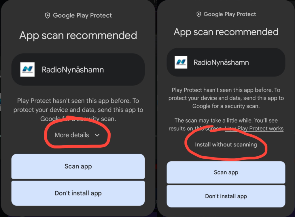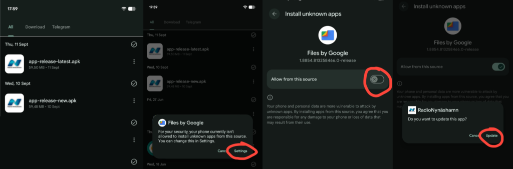 Första gången du installerar en app utanför Google Play behöver du godkänna detta:
